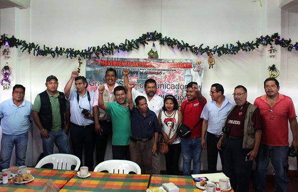 Acompañado del representante de Antorcha en la región Centro, Conrado Hernández Domínguez, hizo extensivo el agradecimiento a los comunicadores y a los medios de comunicación que a lo largo de este año han dado difusión a la gestión y lucha antorchista, la cual ha servido para que muchos guerrerenses humildes del estado de Guerrero hayan podido mejorar un poco sus condiciones de vida, logrando beneficiar en este año a cerca de 20 mil pequeños productores de todas las regiones, asegurando mediante su producción, al menos la alimentación de ellos y sus familias.