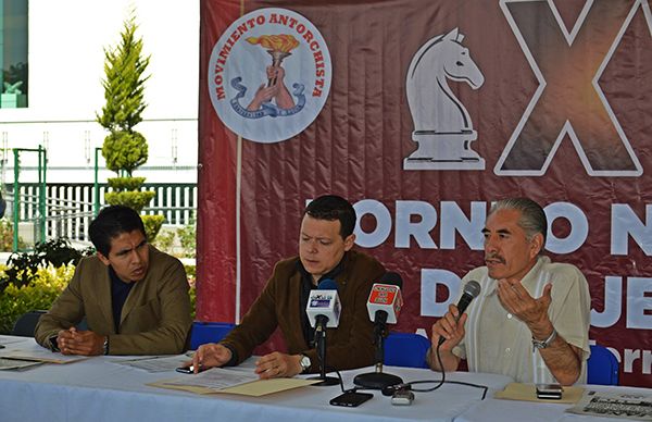 Así lo afirmó el diputado federal, Telésforo García Carreón, quien acompañado de integrantes de la Comisión Deportiva Estatal del Movimiento Antorchista, y por el presidente de la Escuela Nacional de Ajedrez, Rodrigo Ferriz Barrios, brindó una conferencia de prensa con respecto al evento.
