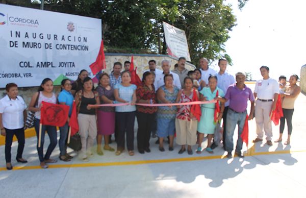 Logrando la inauguración de la construcción de un muro de contención de 216 metros cúbicos en la colonia Ampliación La Joyita, con recursos provenientes del Fondo de Aportaciones para el Fortalecimiento de los Municipios, beneficiando a más de 300 habitantes de la manzana 12 de dicha colonia