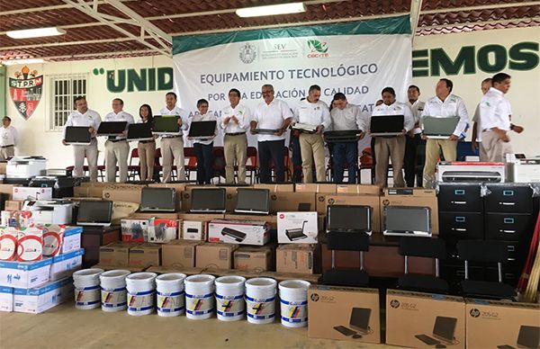 Mecayapan, Ver. El Colegio de Estudios Científicos y Tecnológicos del Estado de Veracruz (CECyTEV), plantel Huazuntlán, ubicado en el municipio de Mecayapan, fue beneficiado con equipo de cómputo y mobiliario.
