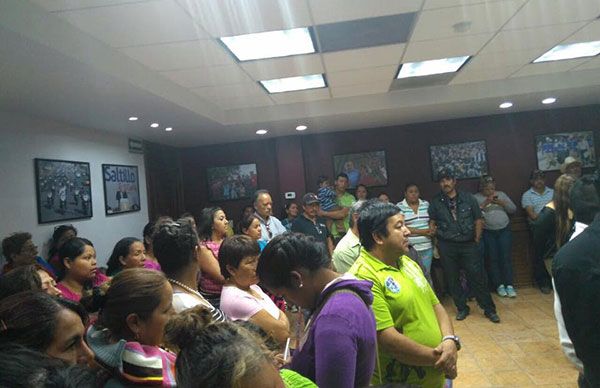 "Exigimos al alcalde que dé respuesta inmediata ya que si no se pueden regularizar los predios, por lo menos entregue material de construcción y láminas para reparar los tejabanes donde viven muchas familias de colonias como Morelos 5o y 4o Sector, Margaritas, Satélite Norte y Sur, Gloria, Ocampo, Puerto de la Virgen, Ampliación Balcones, Valle del Poniente y Valle Escondido ya que se acerca el proceso el electoral y aun será más difícil que se nos pueda dar el apoyo", dijo su dirigente Francisca Sánchez.