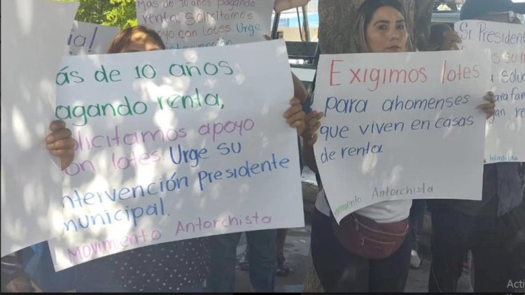 Integrantes del Movimiento Antorchista se manifestaron nuevamente en Palacio Municipal de Ahome para llamar la atención de alguna autoridad, de ser posible el alcalde, de tal forma que puedan hacer sus planteamientos y solicitar terrenos con servicios públicos para construcción de viviendas.