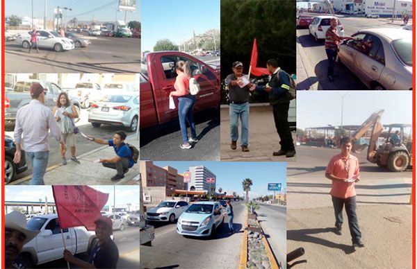 Señaló que en decenas de puntos y cruceros se estuvieron difundiendo decenas de miles de volantes con las denuncias concretas de los incumplimientos gubernamentales, las más importantes de las cuales fueron: 1. Regularización de vivienda popular y de Infonavit.2. Reubicación y construcción de escuelas de Puerto Libertad.3. Electrificación de colonias.4. Pagos y recategorización de docentes.5. Apoyos a vivienda.6. Despensas.7.Construcción de la Casa del Estudiante.8. Subsidio a la Casa del Estudiante.9. Obra social para colonias populares.10. Terminación de pavimentación de la carretera a El Choyudo.11. Exigir que cumplan los ediles de Empalme y Huatabampo.