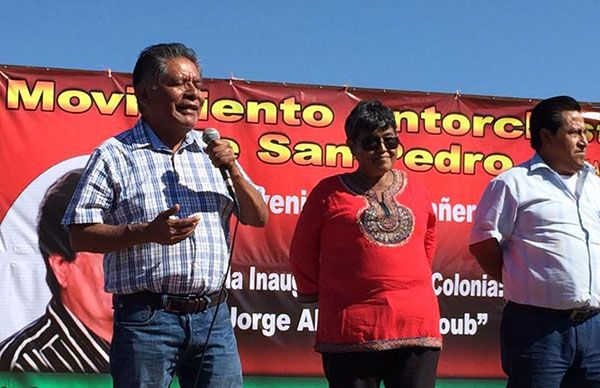 En su mensaje, el dirigente estatal de los antorchistas de Coahuila, Pablo Pérez García, mencionó que la lucha apenas comienza pues no sólo es haber conseguido los terrenos, sino que aún falta en la colonia los servicios básicos; como el agua potable, la luz, el drenaje, pavimentación."Compañeros los invito a que unamos nuestros esfuerzos para seguir luchando por mejorar las condiciones de vida de los habitantes de San Pedro".
