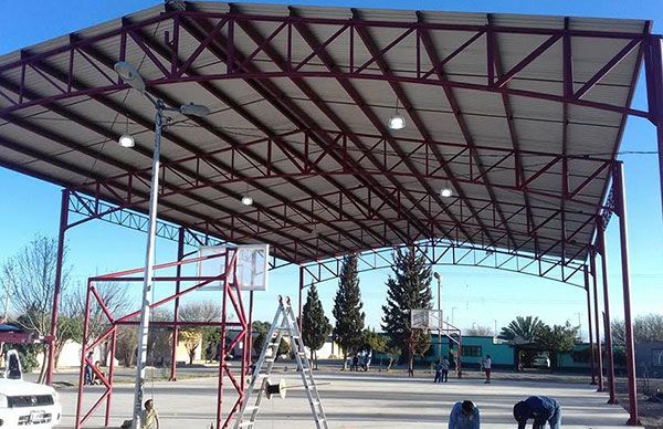 Viesca, Coahuila.- Hace dos meses en el ejido Nuevo Reynosa se dieron inicio a los trabajos de construcción de una techumbre y rehabilitación de la plaza del ejido, y el día de hoy se concluye la obra, beneficiando así a cientos de personas.