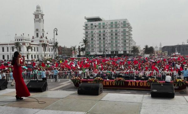 * Es una tarde fresca con la brisa que el aire arroja a los rostros de 20 mil antorchistas