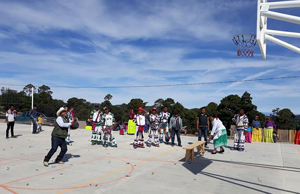 Durango. El Movimiento Antorchista hizo entrega de una cancha de usos múltiples a los habitantes del poblado Mesa de Torrecillas, en el municipio del Mezquital, obra que fue construida con recursos gestionados por el Movimiento Antorchista.