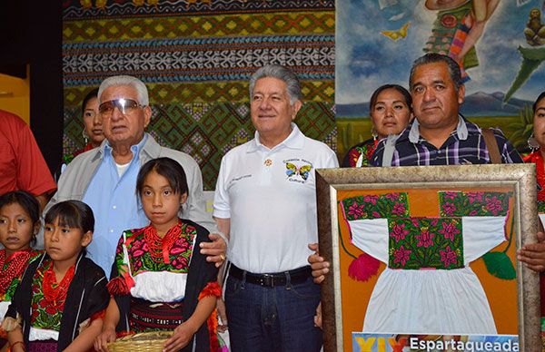 Tecomatlán, Puebla.- Indígenas purépechas del municipio de Santiago Tangamandapio, del estado de Michocán, realizaron un regalo típico al secretario general del Movimiento Antorchista Nacional durante el inicio de la cuarta jornada de actividades de la XIX Espartaqueada Cultural.