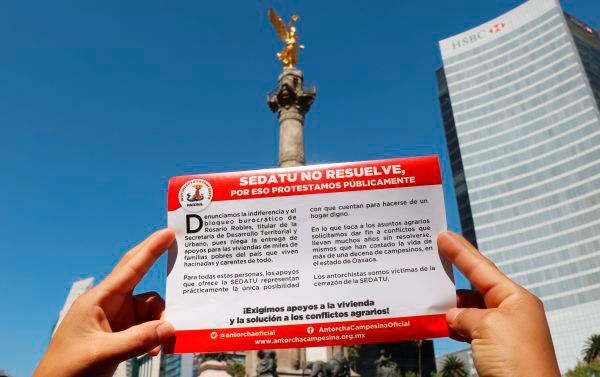 El pasado miércoles 29 de abril, los antorchistas de todo el país llevamos a cabo una concentración de 10 mil personas en la Ciudad de México (CDMX) para exigirle a la Secretaría de Desarrollo Agrario, Territorial y Urbano (SEDATU), en concreto a su titular Rosario Robles Berlanga, el cumplimiento de los acuerdos del año 2016, además pedimos que se fijaran los alcances para el 2017 en los rubros de apoyo a la vivienda y la solución de añejos problemas agrarios en beneficio de miles de familias trabajadoras de todo el país. Como era de esperarse, por el trato omiso y dilatorio de últimas fechas, en esta ocasión la comisión negociadora tampoco fue atendida y, por lo tanto, postergada una vez más la solución a las urgentes necesidades reiteradamente planteadas por los antorchistas de todo el país, representados por nuestros compañeros manifestantes.