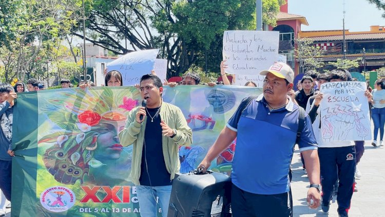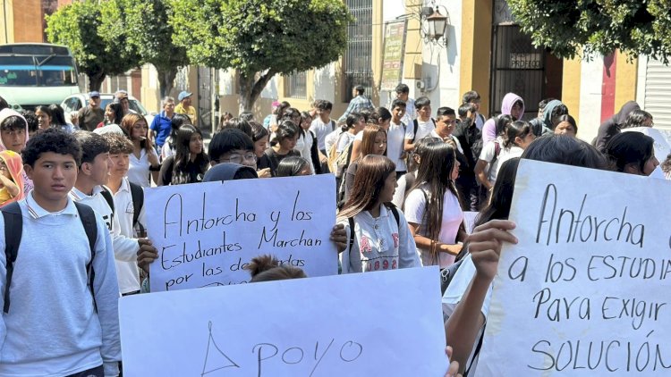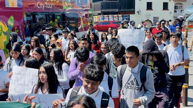 Alumnos, maestros y padres de familia de la escuela preparatoria Ejército Libertador del Sur, se manifestaron para exigir al gobierno del Estado, que cumpliera con el acuerdo de apoyo para asistir a la Espartaqueda.