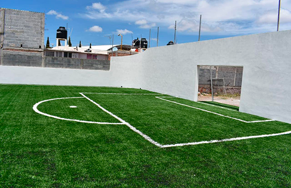 · Estrenan cancha de futbol en primaria Rafael Coronel y dos pavimentaciones en La Zacatecana.