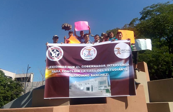 Colima, Colima. Maestros integrantes de Antorcha Magisterial y estudiantes afiliados a la Federación Nacional de Estudiantes Revolucionarios Rafael Ramírez (FNERRR), se dieron cita en el Poder Judicial y en Casa de Gobierno para realizar un mitin de...
