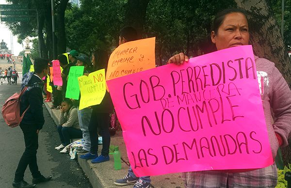 "Mancera no cumple y reprime" se leía en una de las cartulinas que cientos de antorchistas llevaban en sus manos.Es de recordar que las demandas del Movimiento Antorchista, fueron entregada al gobierno de Miguel ángel Mancera, desde el inicio de su administración, y a cuatro años no se han resuelto problemas de educación, vivienda y servicios básicos.