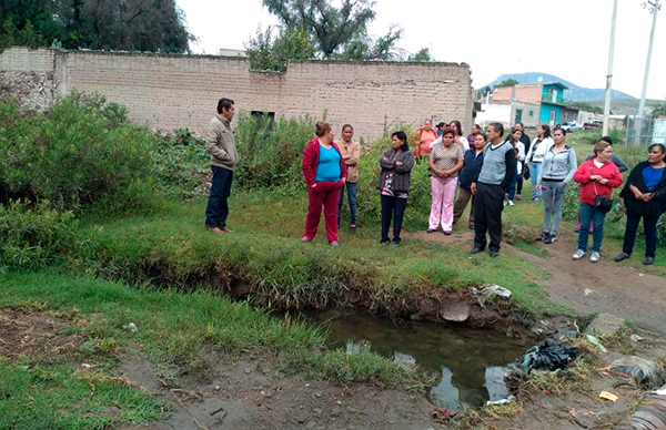 Asientos, Ags. Este jueves se reunieron los militantes de Antorcha junto con el dirigente seccional, Sabás Franco Téllez, en la colonia San Rafael en el municipio de Real de Asientos, para ver las condiciones del arroyo que se encuentra en dicha comunidad.