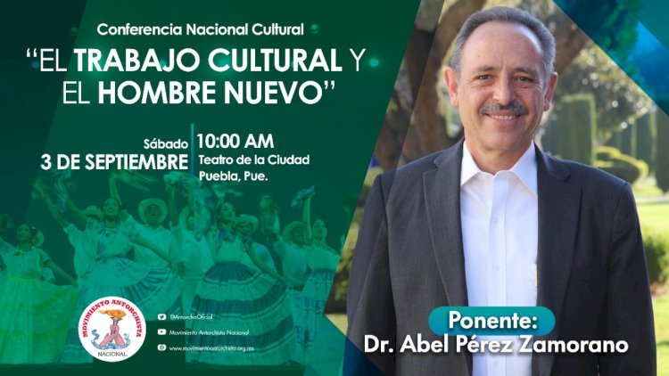Puebla, Puebla. Este sábado, la Comisión Nacional Cultural del Movimiento Antorchista llevará a cabo la conferencia “El trabajo cultural y el hombre nuevo”, la cual tendrá como sede el Teatro de la Ciudad, en Puebla; y será impartida por el doctor Abel Pérez Zamorano. A este coloquio cultural, asistirán aproximadamente 550 artistas provenientes de todos los estados de México.