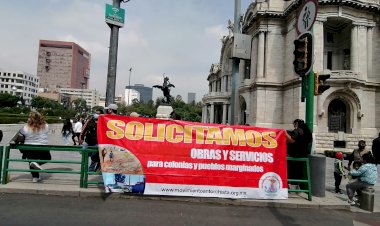 Antorchistas de la Ciudad de México, que radican en distintas alcaldías, se manifestaron en avenida Eje Central a la altura de Bellas Artes, con un mitin pacífico y exhibieron vinilonas con las leyendas como "Sheinbaum no sabe gobernar" y "Gobierno de...