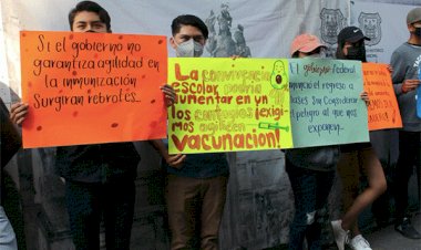Con el fin de exigir al gobierno de MORENA la vacunación de los estudiantes antes del regreso a clases, jóvenes miembros de la FNERRR se manifestaron a las afueras del Palacio Municipal en la capital, para dar a conocer sus peticiones.