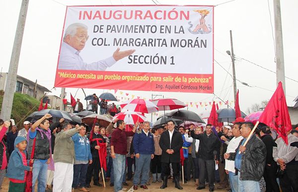 "Con la pavimentación de la calle El Olmo se pone de manifiesto lo que el Movimiento Antorchista busca para todos los mexicanos, una justa distribución de la riqueza nacional, que los recursos que pagamos a través de los impuestos se nos regresen en forma de obras y acciones que mejoren las condiciones de vida de las familias humildes", destacó, Aguirre Ochoa.