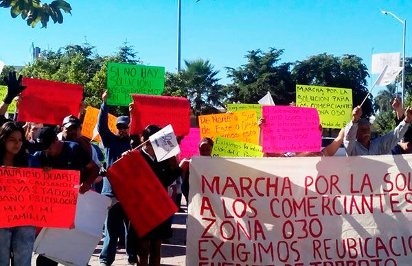 Los Mochis, Sinaloa.- Con dos manifestaciones que incluyeron una marcha hacia el palacio municipal y una protesta durante la inauguración del Teatro Ingenio Los Mochis, en presencia del Gobernador Mario López Valdez, ayer un centenar de manifestantes respaldaron la lucha de los comerciantes que no han sido reubicados en el mercado de la zona 030.