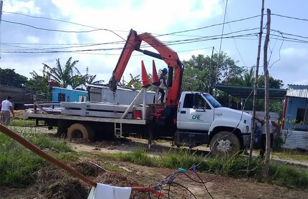 Nanchital, Ver.- Con una inversión de 2.5 millones de pesos etiquetados por Los Diputados Federales Antorchistas, continúan los trabajos de la electrificación en la colonia antorchista El Oasis, en el municipio de Nanchital.
