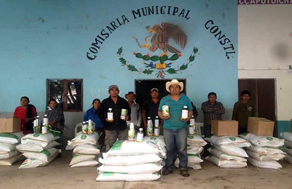 Con la entrega de 169 paquetes de insumos agrícolas a través del Programa de Incentivos a Productores de Maíz y Frijol (PIMAF) implementado por la Sagarpa, concluye el reparto de fertilizante y otros productos para mejorar la producción del campo en beneficio de campesinos de Potoichán y Totohuehuetlán, municipio de Copanatoyac.