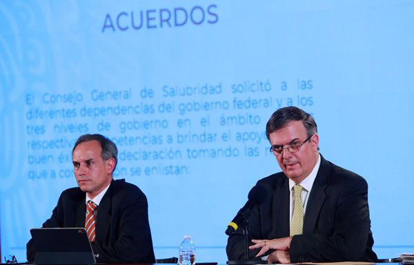 Este 30 de marzo, el canciller Marcelo Ebrard, leyó la declaratoria de emergencia nacional por Covid-19, que se extiende hasta el 30 de abril, y entre otras medidas, manda a su casa a toda la población (con un terrible sacrificio para millones de mexicanos que no tienen comida, ni cuentan con servicios básicos de luz eléctrica, agua o drenaje) y deja sólo en funcionamiento las actividades "indispensables y estratégicas". ¡Todos a su casa! Siendo el primero en desobedecer el propio presidente de la República, que arrastra con su mal ejemplo a mucha gente que cree que se trata de "amarillismo" mediático.
