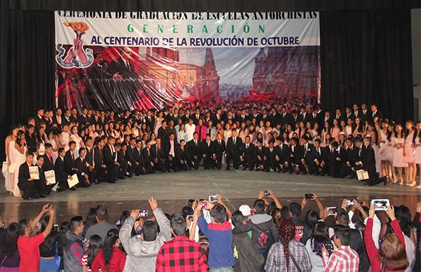 Xalapa, Ver. Bajo el nombre de generación "Al Centenario de la Revolución de Octubre", egresaron 250 jóvenes de escuelas del nivel medio superior.