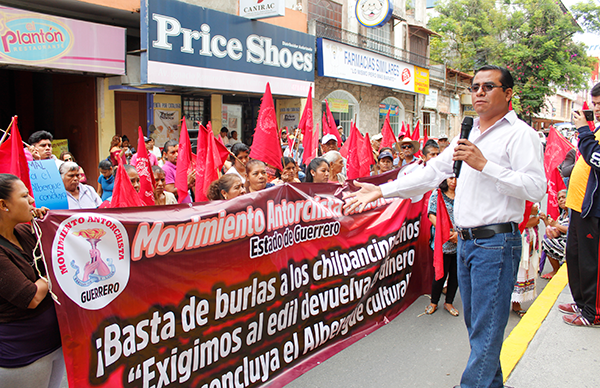 Cientos de antorchistas instalaron un plantón frente a las oficinas del ayuntamiento de Chilpancingo que dirige la actual administración de Lic.Marcó Antonio Leyva Mena, quién desvió el dinero destinado para el albergue cultural en la colonia Mártires Antorchistas; obra a la que fueron otorgados 6 millones de pesos y que este funcionario no ha pagado a la empresa para que la concluya.