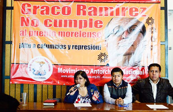 Toluca. Debido a que el Gobierno de Morelos, encabezado por el perredista Graco Ramírez Abreu, no cumple con demandas y peticiones que le han hecho miles de morelenses organizados en el antorchismo, y sí aplica una política represiva y calumniadora contra la dirigencia y la organización social del estado, el Movimiento Antorchista Nacional anuncia, en ruedas de prensa realizadas en todo el país, que arranca una "Campaña nacional de denuncia contra la política de represión e incumplimientos por parte del gobierno morelense".