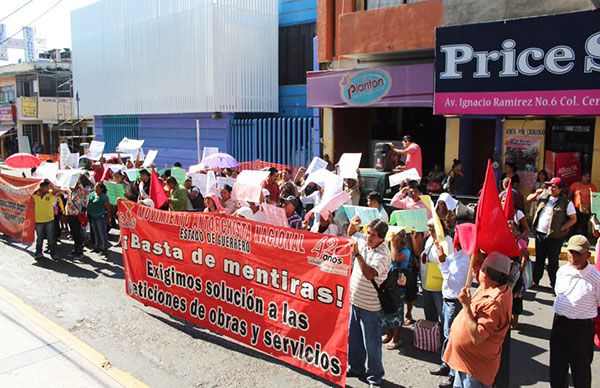 Este martes, antorchistas de Chilpancingo encabezados por los representantes de la organización en las regiones Montaña y Centro, Macario Moreno de la Cruz y Conrado Hernández Domínguez, protestaron en la entrada del ayuntamiento para exigir la liberación de los recursos gestionados por la organización ante el Congreso de la Unión, y que serán utilizados para la construcción de un albergue cultural en la colonia Mártires Antorchistas, en cuyas obras se invertirán seis millones de pesos, y en el asfalto del camino que conduce del Ocotito a Xoyotepec se invertirán siete millones de pesos, de los cuales las autoridades del ayuntamiento se niegan a firmar el convenio y aportar el anticipo que se les pide.