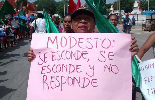 Flores Chan aseguró: "Ya casi se cumple un año de la administración panista y los compromisos del 'Profesor' Modesto Pech Uitz, hasta el momento no se han cumplido pero a cambio hemos sido víctimas de amenazas, injurias y calumnias por pedirle al edil que resuelva las necesidades apremiantes de cientos de campesinos que solo buscan que se les amplié el alumbrado público, agua potable, vivienda, pavimentación de calles, programas de techos, pisos y baños; también de despensas para adultos mayores, entre otras necesidades."