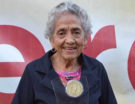 Tecomatán, Puebla. De 95 años de edad, maestra jubilada, Reina Pérez Castañeda es una de las decenas de artistas que participan en la competencia de rondalla, en la categoría obrero-popular.Originaria de Villa Madero, municipio de Arcelia, Guerrero, trae a su rondalla a competir a la XIX Espartaqueada Cultural del Movimiento Antorchista.
