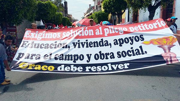 Recordó las demandas planteadas al gobierno estatal en un pliego petitorio: el reconocimiento a la preparatoria "Ejercito Libertador del Sur", que atiende a decenas de jóvenes y a la fecha no hay respuesta; vivienda para 400 familias, quienes llevan años con la solicitud, pero tampoco tienen respuesta; obra social y proyectos productivos para campesinos y habitantes de varios municipios.