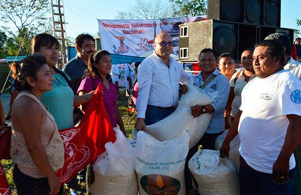 Chemax, Yucatán.- Más de 1500 antorchistas se reunieron en la cabecera municipal para festejar la entrega de 100 toneladas maíz, producto de la gestión antorchista ante el Diputado Federal Jorge Carlos Ramírez Marín, que beneficiará a 2000 familias en el municipio.