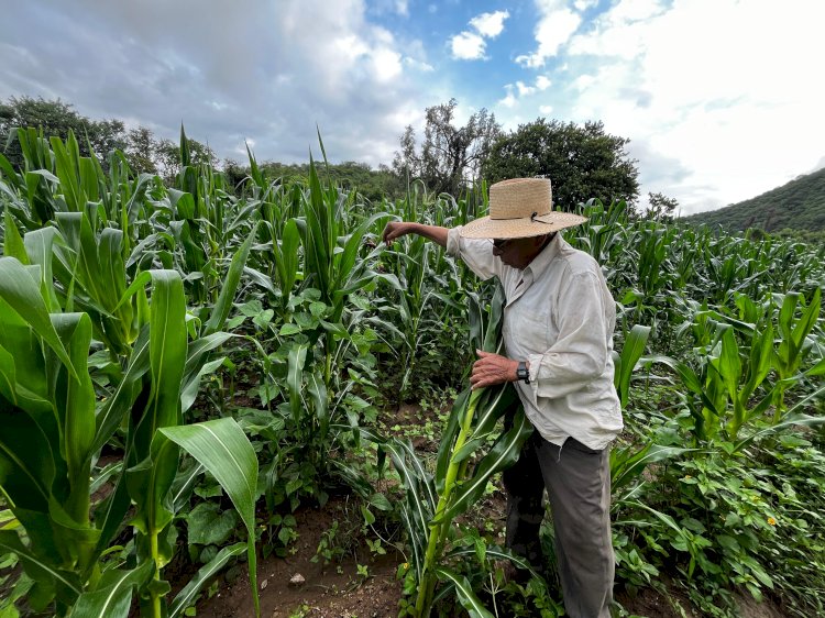 Las lluvias frecuentes que han caído en las últimas semanas han disipado un poco el calor sofocante de la primavera, pero, más importante, han permitido “que la siembra se esté dando bonito”, lo que responde a la alegría de don Odilio, que, al igual que él, muchos de los vecinos de esta comunidad, y de otras como La Unión, Tempexquixtle y Tezoquipan, sobreviven de lo que siembran, a pesar de que el apoyo al campo en estos sexenios de Morena se ha reducido considerablemente.