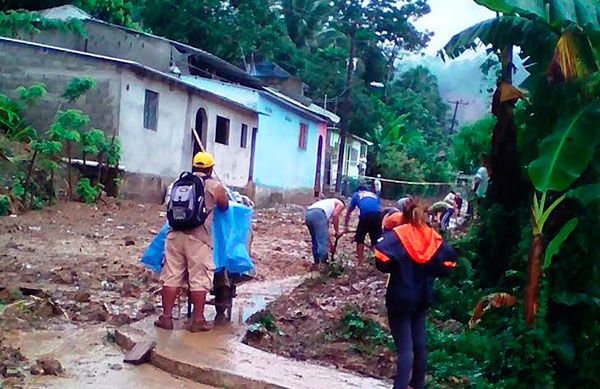 Tabasco. Debido al reblandecimiento del suelo provocado por las fuertes lluvias, en diferentes comunidades de la Sierra de Tacotalpa se presentaron desgajamientos de cerros provocando que algunas casas quedaran derrumbadas o sepultadas.