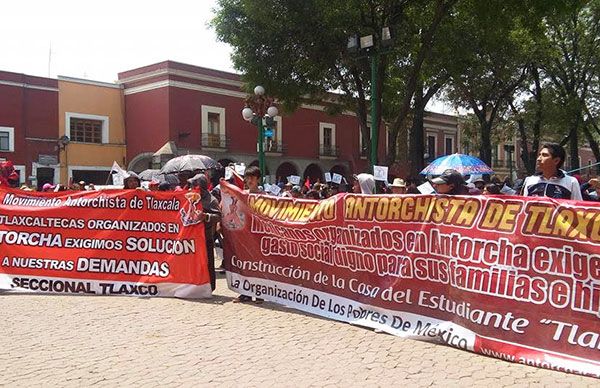 En este sentido los antorchistas pertenecientes a los seccionales de Tlaxcala, Tlaxco y Huamantla, se manifestaron en la capital tomando como punto de partida diferentes rutas para concentrase, posteriormente, en el zócalo de la ciudad y con ello realizar un mitin, con ello exigen al gobierno que encabeza Marco Antonio Mena Rodríguez la entrega del recurso que los antorchistas tlaxcaltecas gestionaron para diversas obras en el estado.