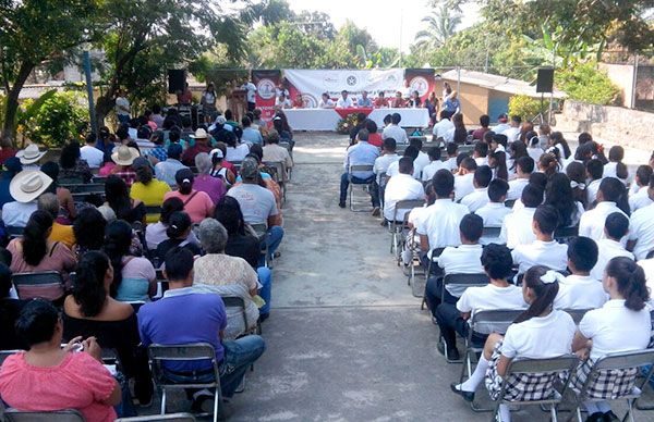 El Telebachillerato Comunitario No.09 de la comunidad de Chiapa, en el municipio de Cuauhtémoc, celebra en compañía de sus alumnos la ceremonia de colocación de la primera piedra de lo que será su nuevo edificio de bachillerato.